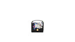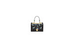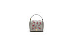 Hand embroidered rubberized calfskin double handle handbag with shoulder strap