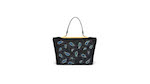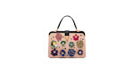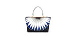 Petal marquetry calfskin double handle handbag with shoulder strap