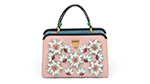 mini borsa doppia in pelle e vernice con fiori e pietre ricamati a mano